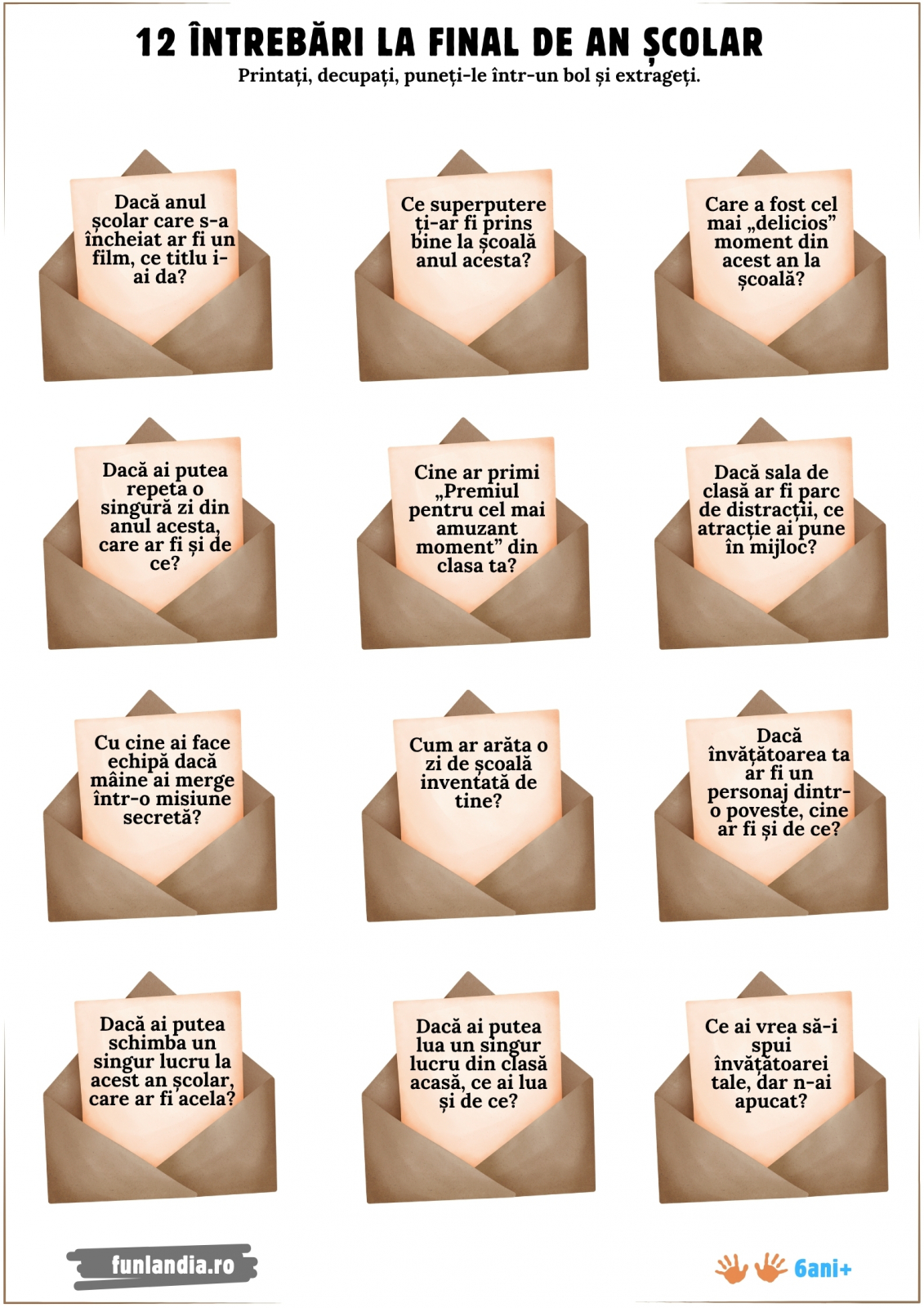 Am pregătit pentru voi o fișă cu întrebări jucăușe și de suflet, perfecte pentru finalul de an școlar.
