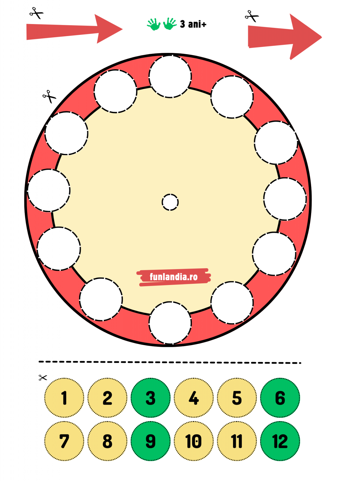 Pentru un plus de rezistență printați pe o hârtie ușor cartonată, iar săgețile le puteți prinde cu un șurub mic fixat cu piuliță în spate.