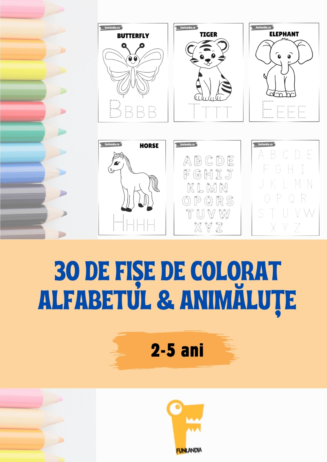 Fise De Colorat: 30 de fise de colorat cu animalute si literele alfabetului
